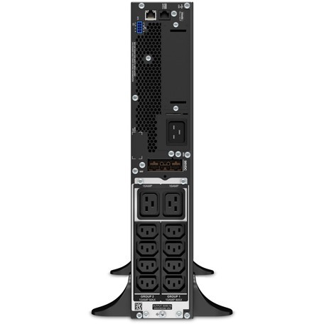 APC Smart-UPS On-Line SRT3000XLI - 3000VA. 8x C13 & 2x C19. tower. UPS topology: Double-conversion (Online). Output power capacity: 3 kVA. Output power: 2700 W. AC outlet types: C13 coupler. C19 coupler. Power plug: C20 coupler. AC outlets quantity: 10 AC outlet(s). Battery technology: Sealed Lead Acid (VRLA). Battery capacity: 505 VAh. Typical backup time at full load: 4 min. Form factor: Tower. Product colour: Black. Cable length: 2.44 m. Compliance certificates: RoHS. Certification: CE. CE Mark. EAC. EN/IEC 62040-1. EN/IEC 62040-2. RCM. VDE. REACH