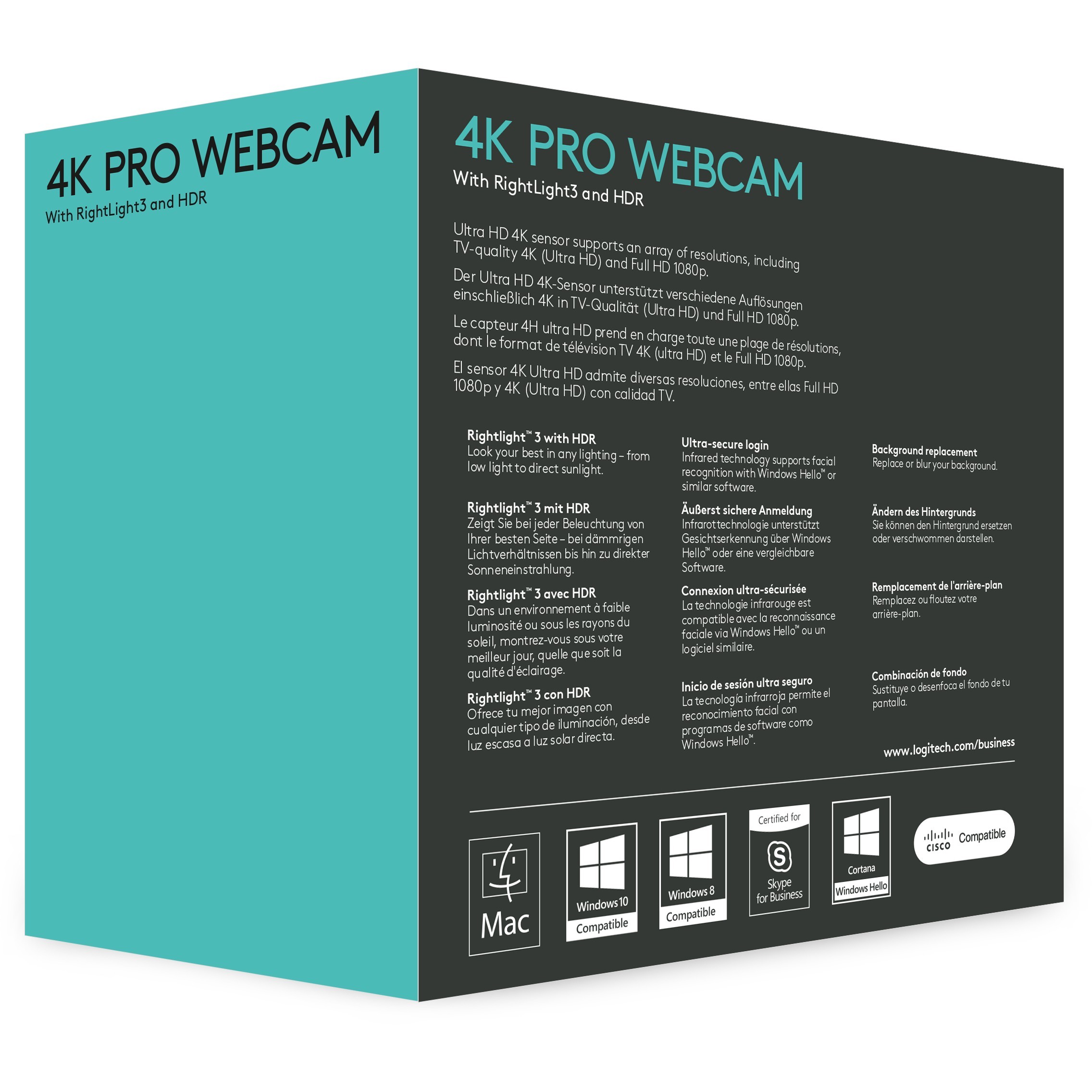 Logitech BRIO ULTRA HD PRO BUSINESS WEBCAM. Megapixel (approx.): 13 MP. Maximum video resolution: 4096 x 2160 pixels. Camera HD type: Full HD. Interface: USB. Product colour: Black. Mounting type: Clip/Stand. Mac operating systems supported: MacOS. Other operating systems supported: ChromeOS. Width: 102 mm. Depth: 27 mm. Height: 27 mm. Package width: 80 mm. Package depth: 136 mm. Package height: 136 mm