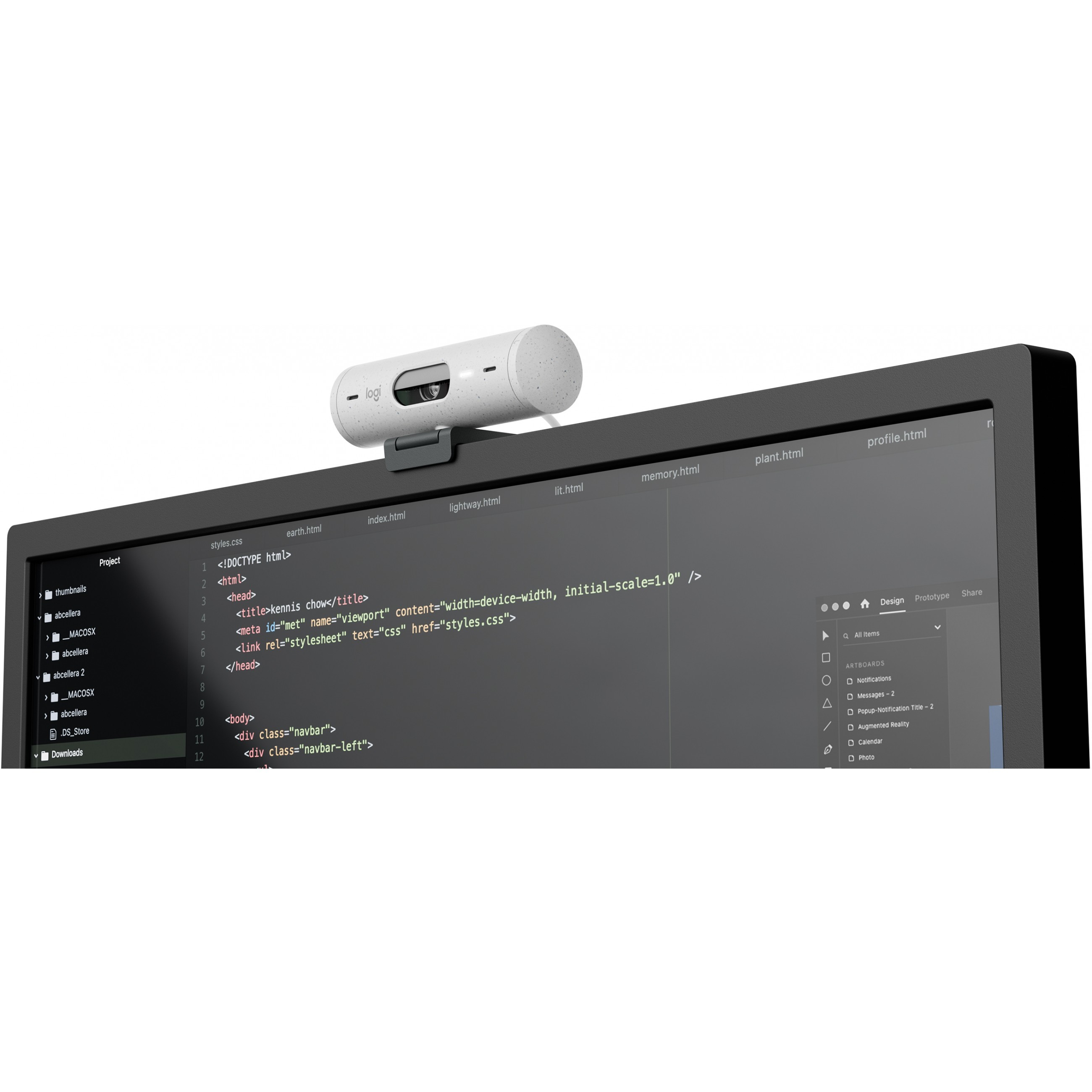 Logitech Brio 500 - Full HD 1080p Webcam, 60 fps, 90° FOV, Privacy Shutter - White