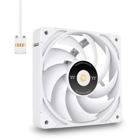 Thermaltake TOUGHFAN EX12 Pro. Type: Fan. Fan diameter: 12 cm. Rotational speed (min): 500 RPM. Rotational speed (max): 2000 RPM. Minimum air pressure: 2.6 mmH2O. Maximum air pressure: 3.19 mmH2O. Bearing type: Hydraulic. Product colour: White