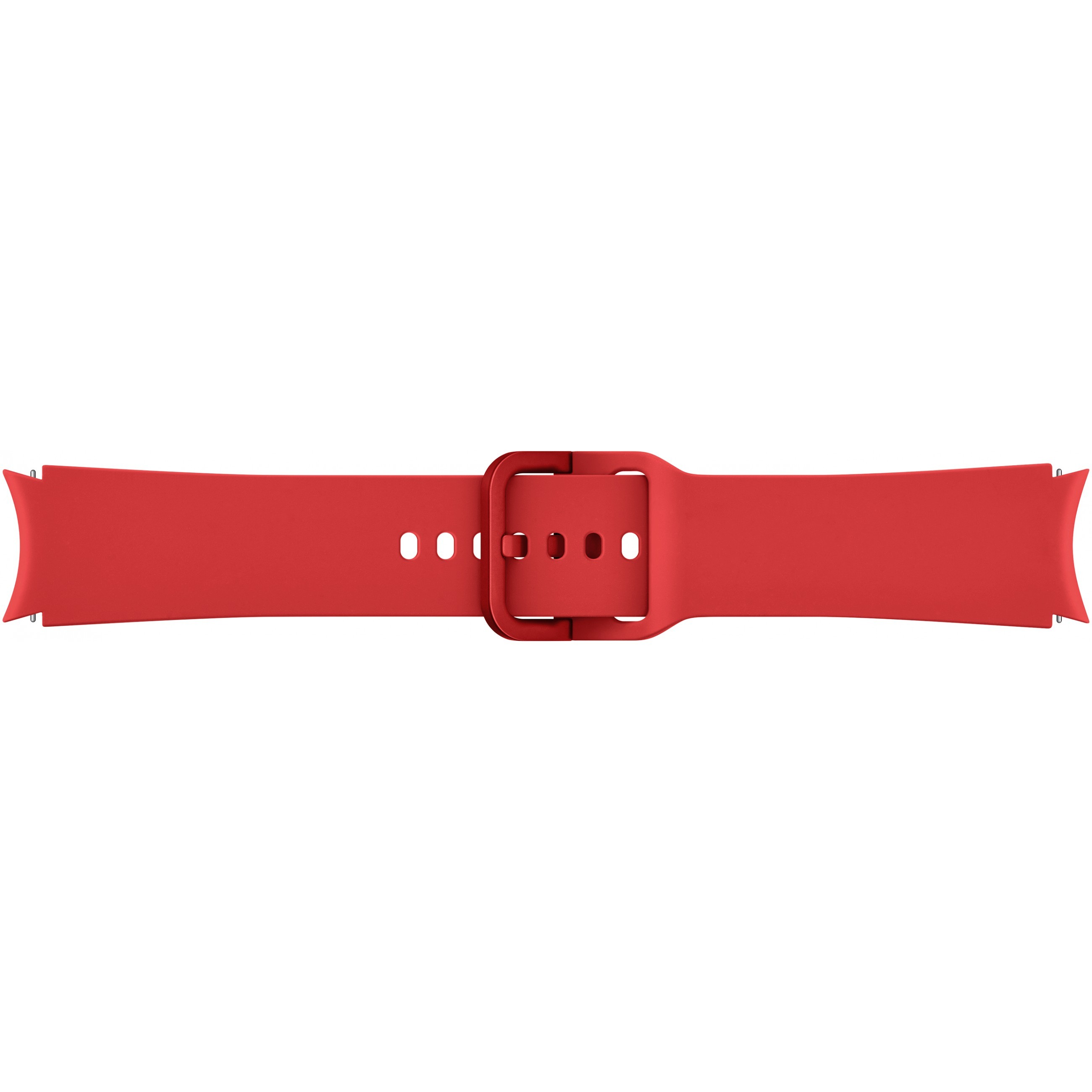 Red 20 mm Samsung Sport Band (ET-SFR87LREGEU), M/L sizes, sweat-resistant silicone strap, compatible with Galaxy Watch4. Weight 23 g; 1 piece.
