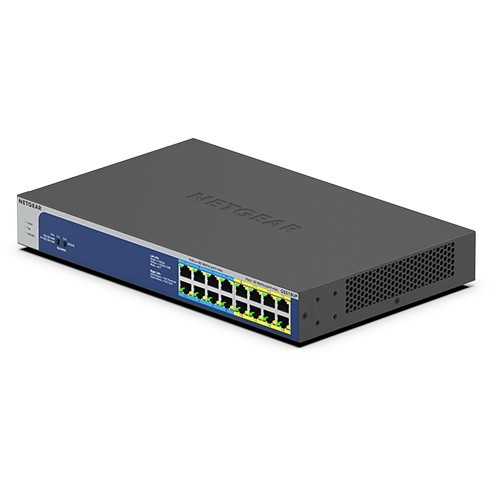 NETGEAR GS516UP. Switch type: Unmanaged. Basic switching RJ-45 Ethernet ports type: Gigabit Ethernet (10/100/1000). Basic switching RJ-45 Ethernet ports quantity: 16. Full duplex. MAC address table: 8000 entries. Switching capacity: 32 Gbit/s. Networking standards: IEEE 802.3. IEEE 802.3af. IEEE 802.3at. IEEE 802.3az. IEEE 802.3bt. IEEE 802.3i. IEEE 802.3p. IEEE.... Power over Ethernet (PoE). Rack mounting
