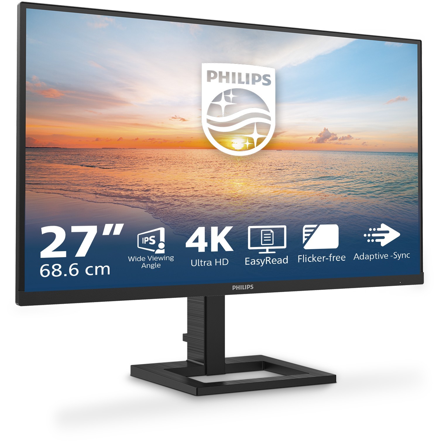 Philips 27E1N1900AE - 27-inch 4K UHD (3840x2160) IPS Monitor, HDR10, USB-C PD, 2xHDMI 2.0, Built-in Speakers, Black