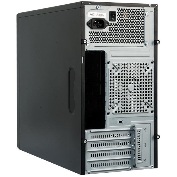 Aluminum mini mid-tower for micro-ATX motherboards. Supports GPUs up to 34 cm and CPU coolers up to 14 cm. 3x3.5" bays, 2x external 5.25", 2x USB-A front ports.