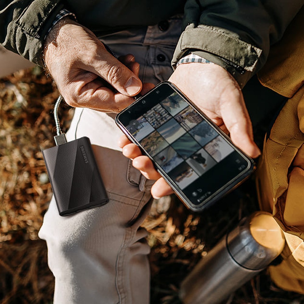 Samsung T9 MU-PG2T0B 2TB Portable SSD — USB 3.2 Gen2 Type-C, up to 2000 MB/s read / 1950 MB/s write, hardware encryption, drop-proof, black.
