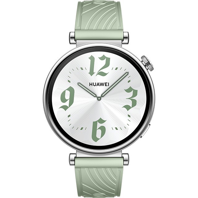 Huawei WATCH GT 4. Display diagonal: 3.35 cm (1.32"). Display technology: AMOLED. Display resolution: 466 x 466 pixels. Flash memory: 32 GB. Wi-Fi. GPS (satellite). Battery capacity: 323 mAh. Weight: 37 g. Band material: Fluoroelastomer. Band colour: Green