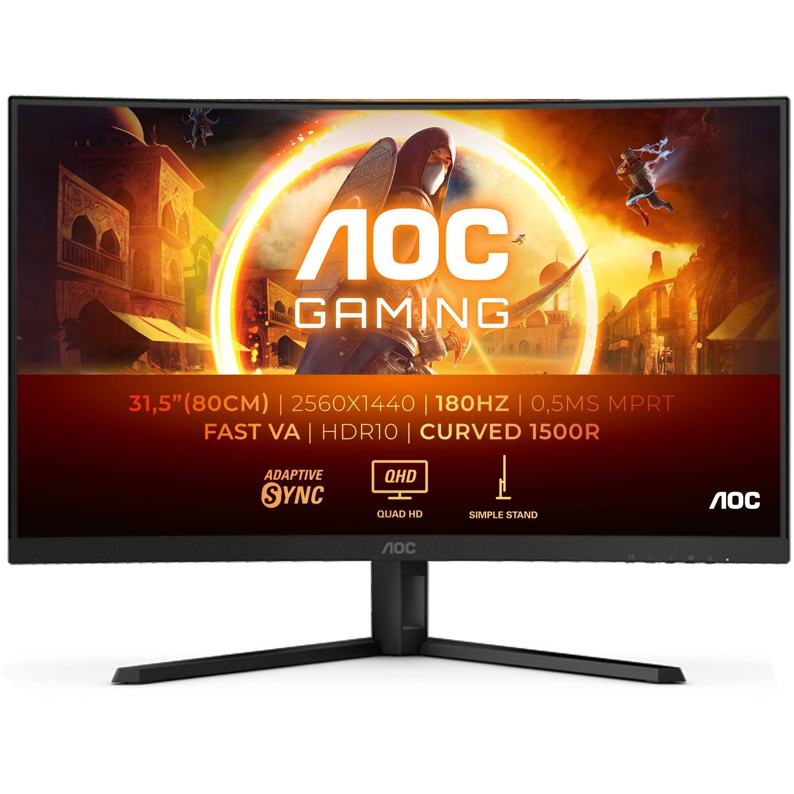 AOC CQ32G4VE - 31.5" QHD Curved Gaming Monitor, 1500R, 180Hz, 1ms GTG, HDR10, DP1.4 & HDMI 2.0, Black
