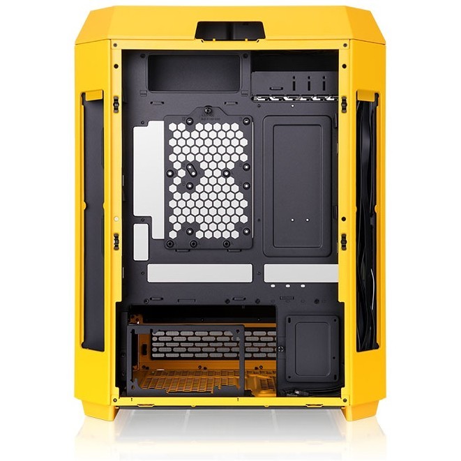 Yellow Thermaltake Tower 600 mid-tower case with tempered glass, supports ATX/micro-ATX/Mini-ITX, 1x3.5in + 5x2.5in bays, 7 expansion slots, 4x USB-A, 1x USB-C Gen2, GPU 280mm