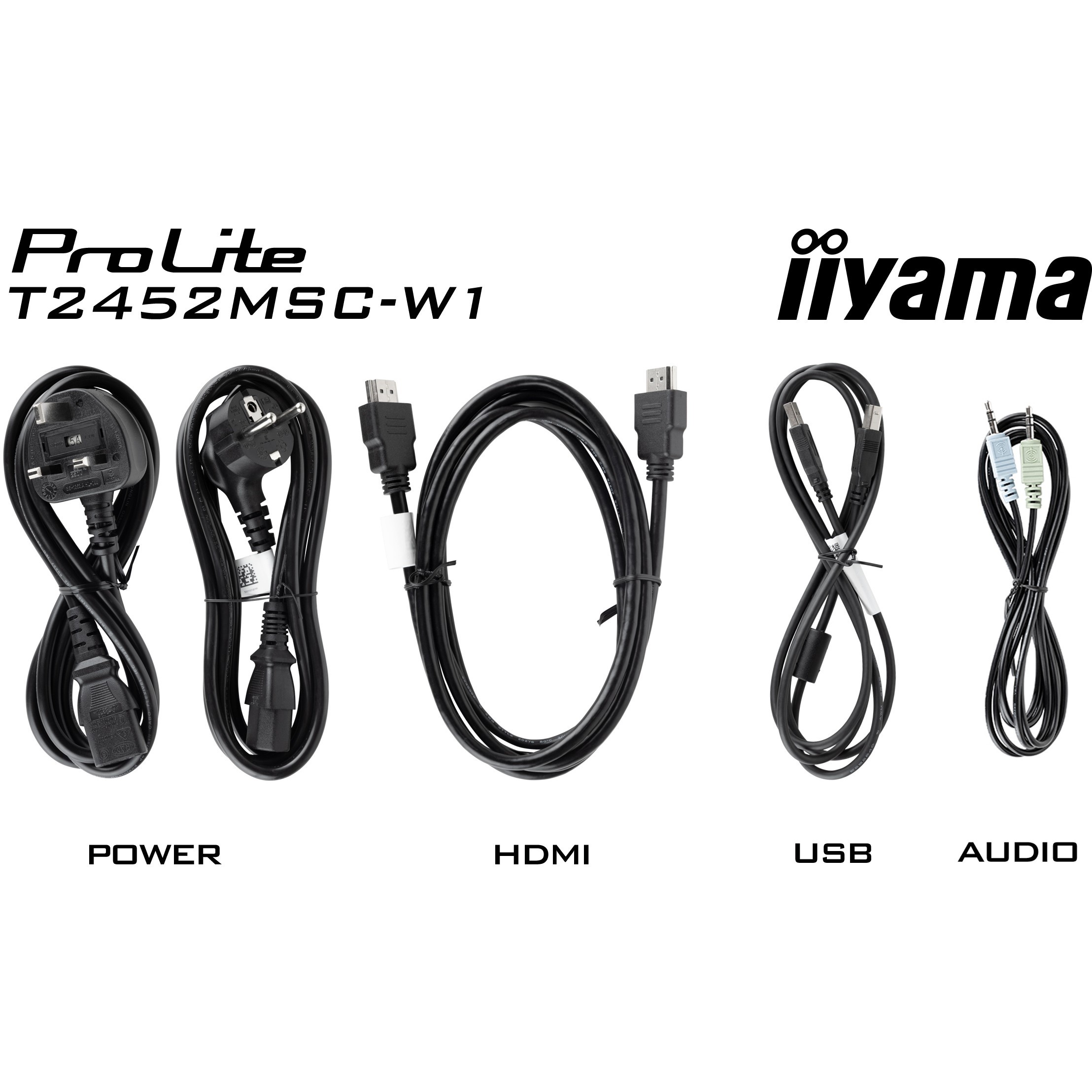 iiyama ProLite T2452MSC-W1 - 23.8-inch IPS PCAP 10pt Touchscreen, Full HD, White, HDMI+DP, 2xUSB