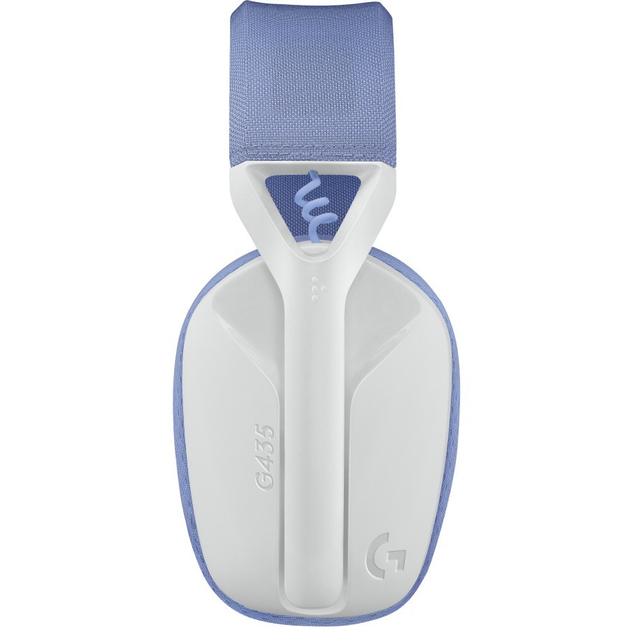 Lightweight (165 g) Logitech G435 wireless gaming headset with LIGHTSPEED 2.4GHz + Bluetooth, 18h battery, Discord Certified, Dolby Atmos, USB‑A receiver, Off‑White/Lilac.