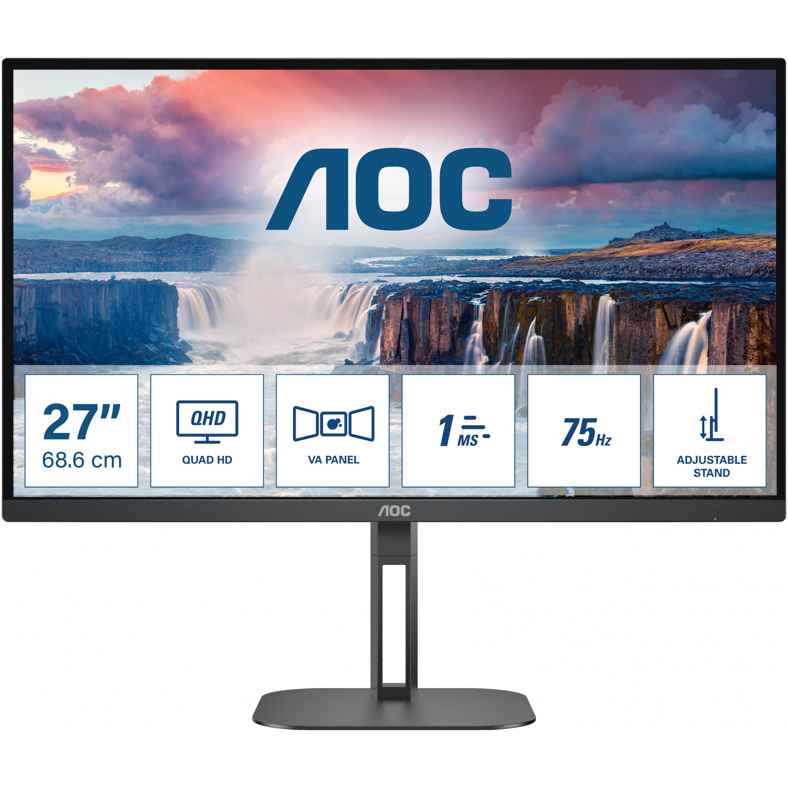 AOC 27" QHD VA monitor (Q27V5N/BK) with 2560x1440 resolution, 75Hz, 4ms, FreeSync Premium Pro, 300 cd/m², built-in speakers, 2x HDMI & 2x DisplayPort.