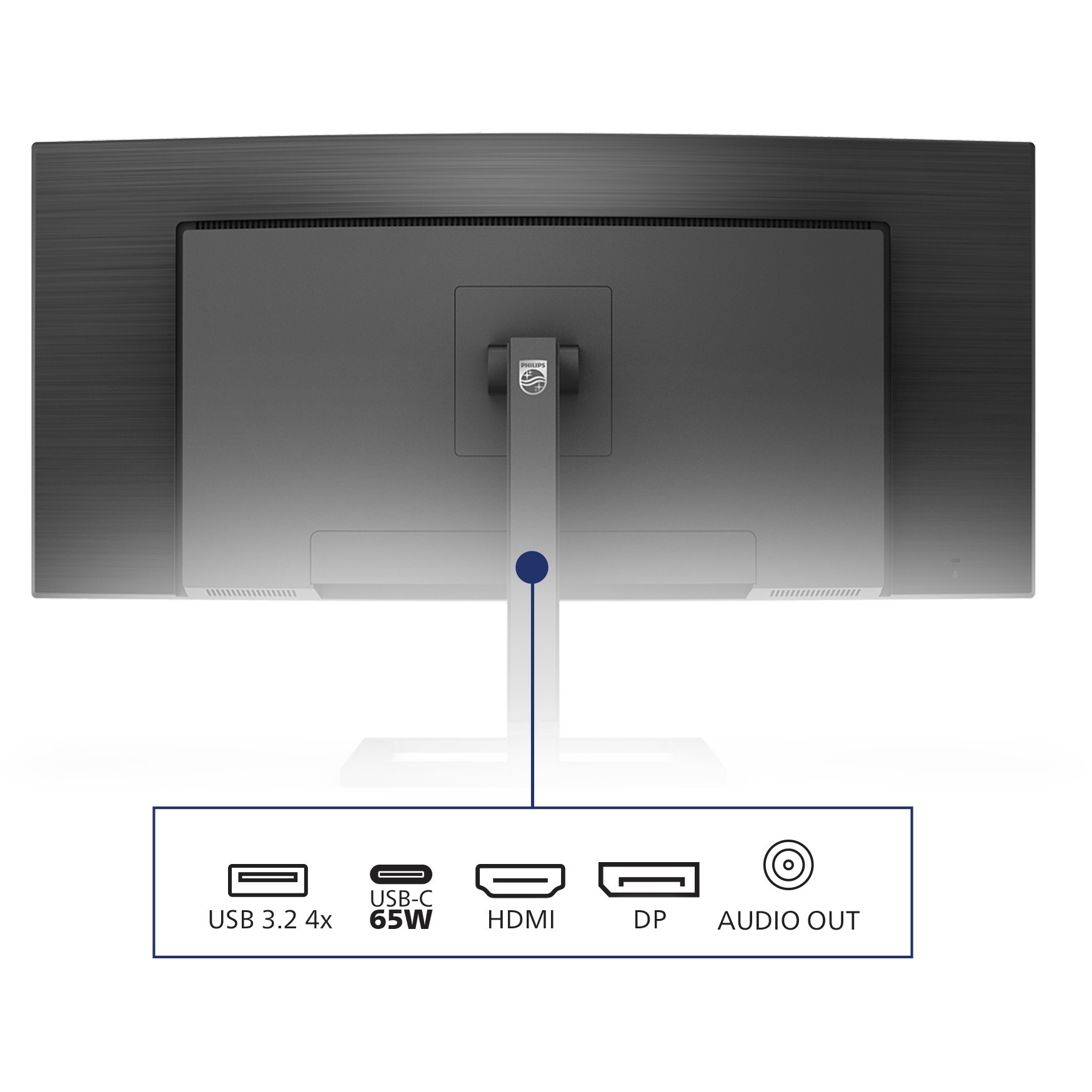 Philips 346E2CUAE - 34in UWQHD Curved VA Monitor (3440x1440) 100Hz, USB-C PD65W, HDMI 2.0/DP1.2, Black