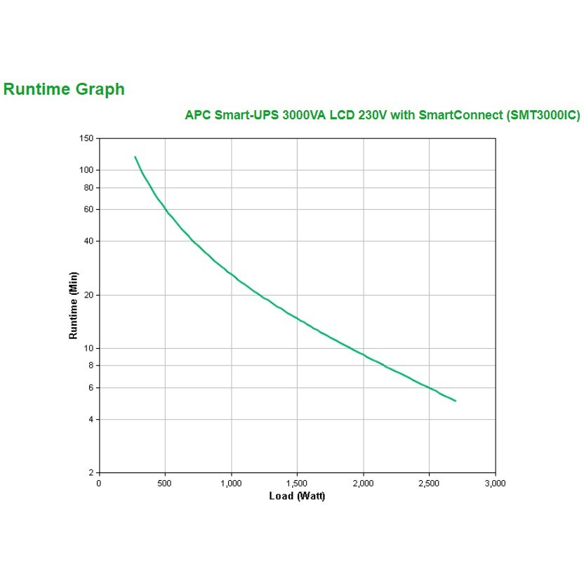 APC Smart-UPS SMT3000IC - 8x C13. 1x C19. USB. SmartConnect. 3000VA. UPS topology: Line-Interactive. Output power capacity: 3 kVA. Output power: 2700 W. AC outlet types: C13 coupler. C19 coupler. Power plug: C20 coupler. AC outlets quantity: 9 AC outlet(s). Battery technology: Sealed Lead Acid (VRLA). Typical backup time at full load: 5.1 min. Typical backup time at half load: 17.2 min. Form factor: Tower. Product colour: Black. Cable length: 1.83 m. Compliance certificates: RoHS. Certification: CE. CSA. EAC. EN/IEC 62040-1. EN/IEC 62040-2. RCM. VDE. REACH. PEP. EOLI