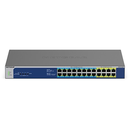 NETGEAR GS524UP. Switch type: Unmanaged. Basic switching RJ-45 Ethernet ports type: Gigabit Ethernet (10/100/1000). Basic switching RJ-45 Ethernet ports quantity: 24. Full duplex. MAC address table: 8000 entries. Switching capacity: 48 Gbit/s. Networking standards: IEEE 802.3. IEEE 802.3af. IEEE 802.3at. IEEE 802.3az. IEEE 802.3bt. IEEE 802.3i. IEEE 802.3p. IEEE.... Power over Ethernet (PoE). Rack mounting