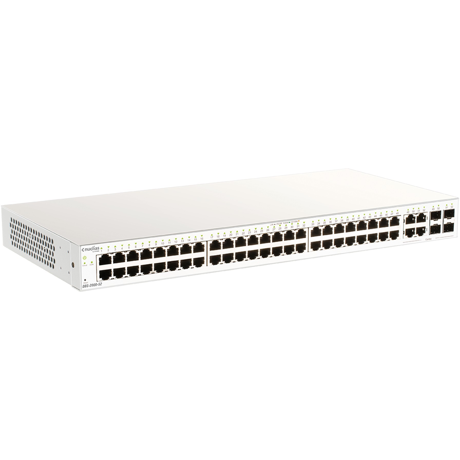 D-Link Nuclias 52-Port Layer2 Gigabit Switch - DBS-2000-52 - 48x RJ-45 + 4x SFP, Fanless, L2 Managed