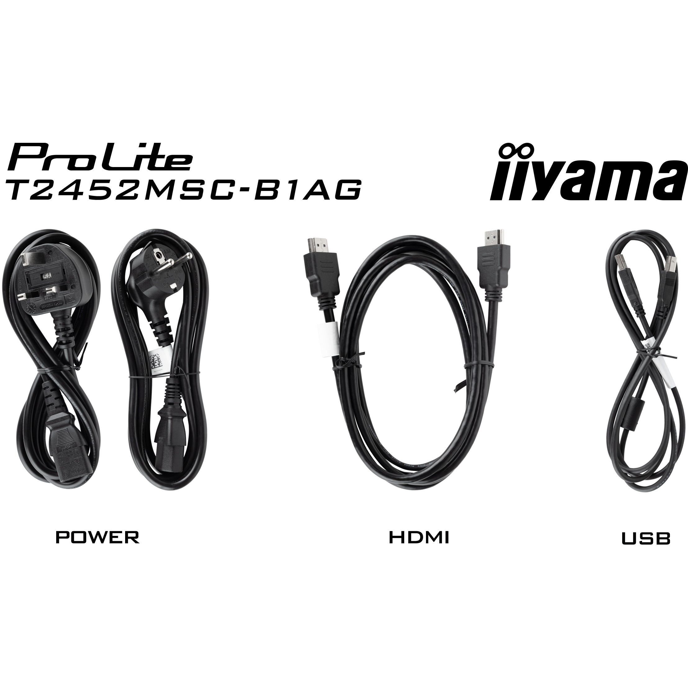 iiyama ProLite T2452MSC-B1AG - 23.8" Touchscreen IPS Monitor, Full HD, 10pt Touch, HDMI+DP+USB, Black