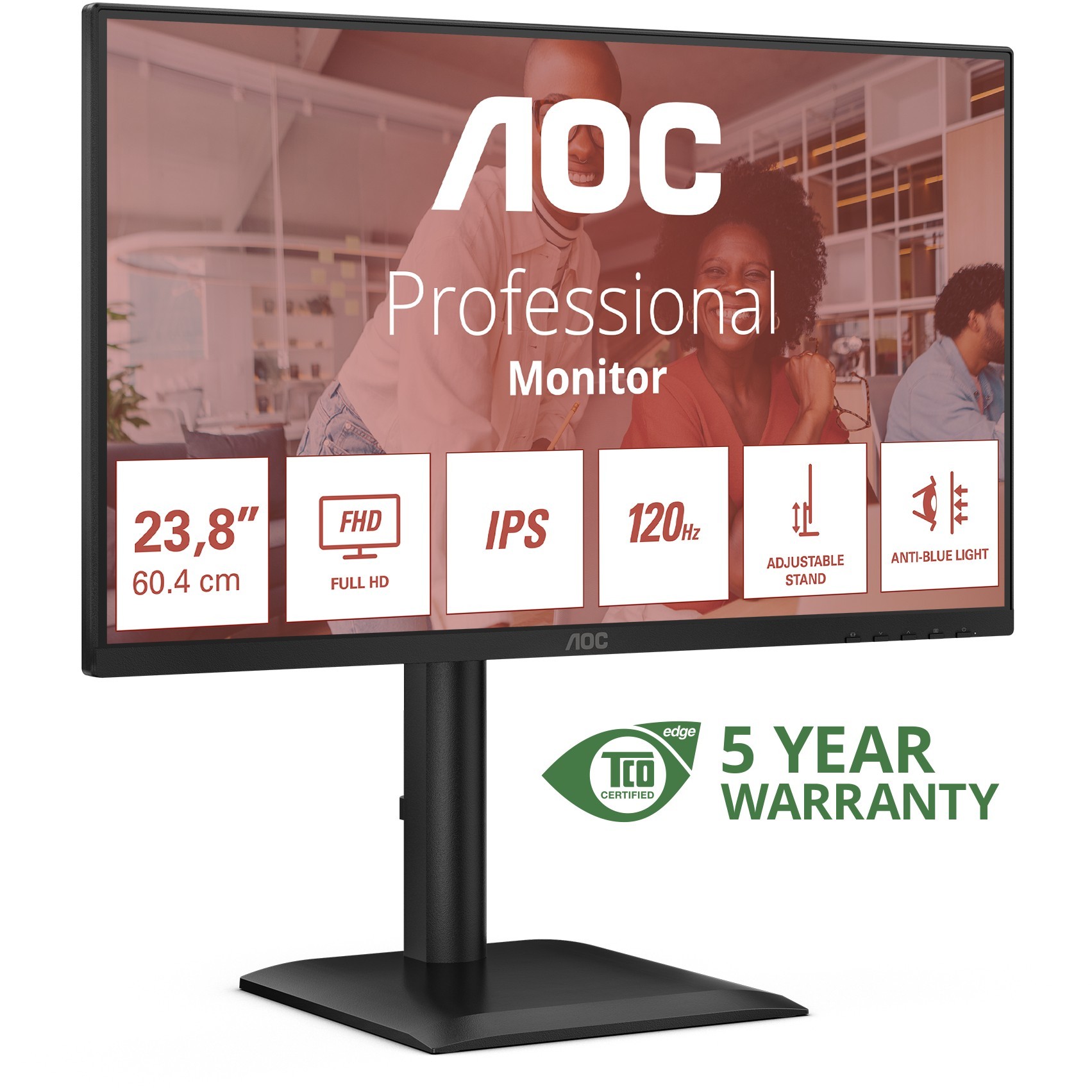 AOC 24E4U - 23.8" IPS Monitor - FHD 1920x1080, 120Hz, HDMI/DP, 4x USB-A Hub, Height-Adjustable, Black