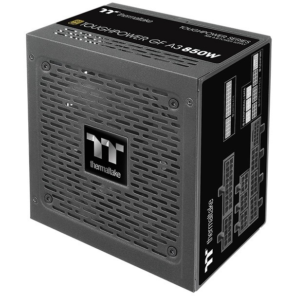 850W Thermaltake Toughpower GF A3 Gen5 — 80 PLUS Gold, Fully‑Modular ATX 3.0 PSU; 120mm fan, 4×6+2 PCIe, 1×12VHPWR, 70.8A on +12V, 10‑year warranty.