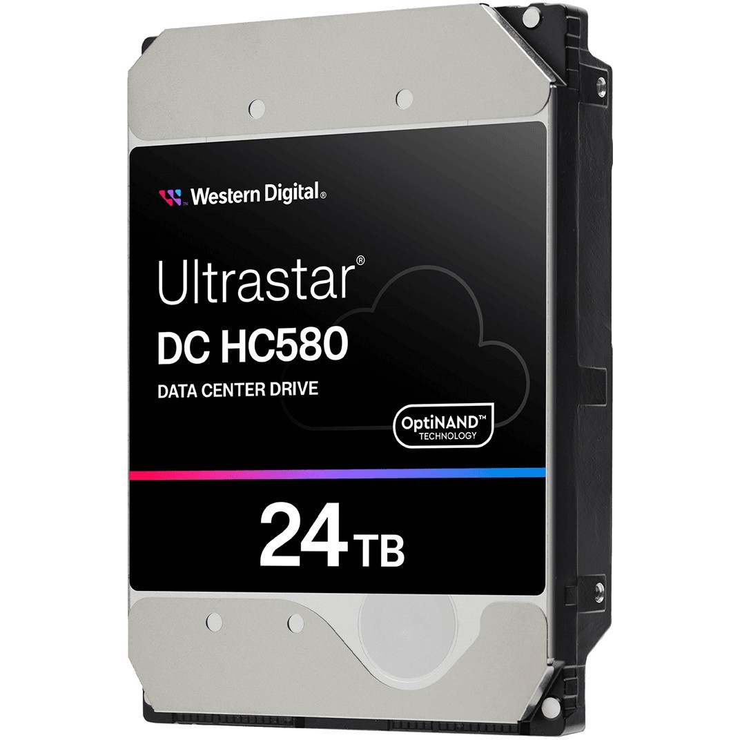 WD Ultrastar DC HC580 24TB enterprise HDD — 7200 RPM, 512MB cache, 3.5-inch SAS 12Gb/s, sustained 298 MiB/s, 550 TB/yr workload, 5-year warranty.
