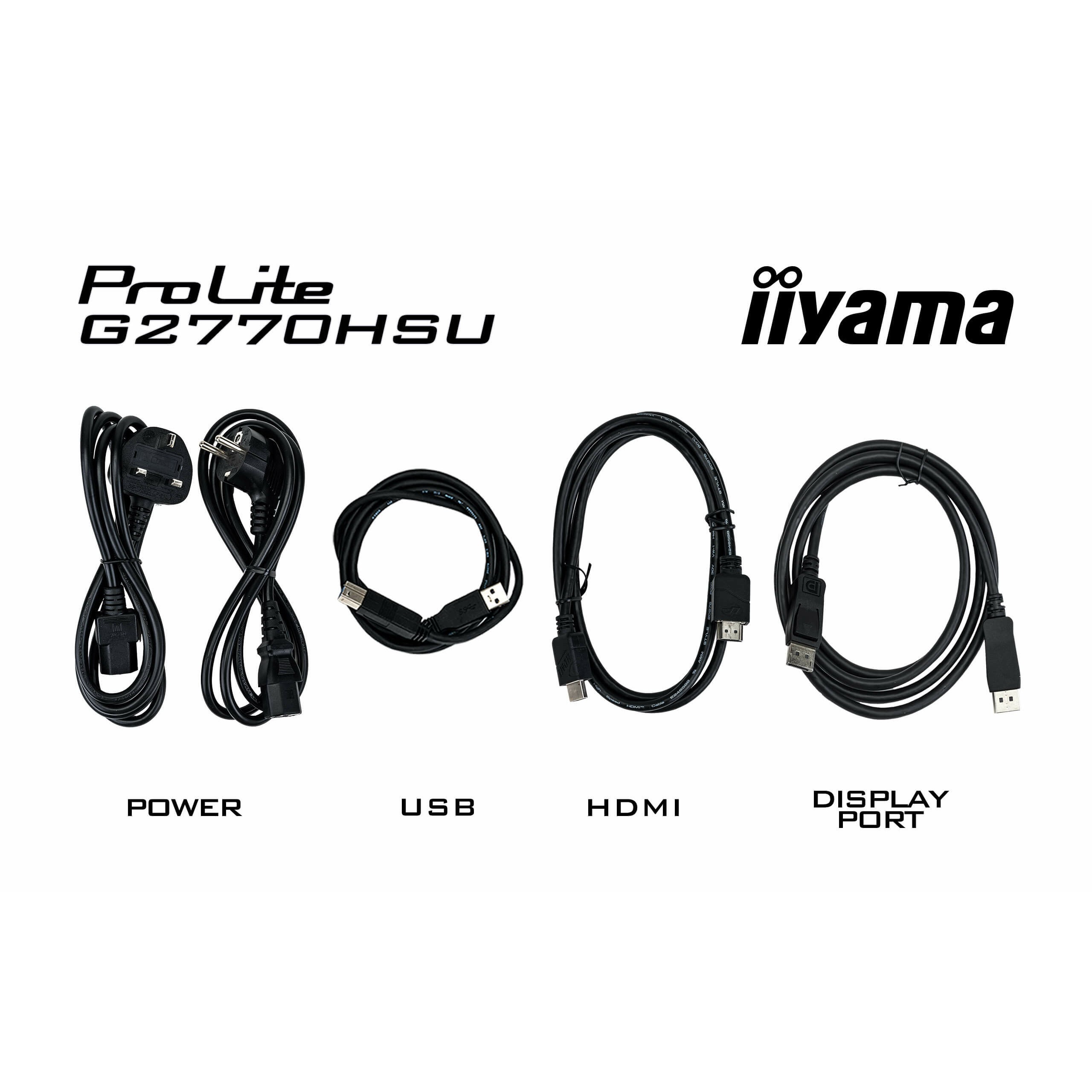 iiyama G-MASTER Unleash your full gaming potential with the Fast IPS G2770HSU Red Eagle. Display diagonal: 68.6 cm (27"). Display resolution: 1920 x 1080 pixels. HD type: Full HD. Display technology: LCD. Response time: 0.2 ms. Native aspect ratio: 16:9. Viewing angle. horizontal: 178°. Viewing angle. vertical: 178°. Built-in speaker(s). Built-in USB hub. USB hub version: 3.2 Gen 1 (3.1 Gen 1). VESA mounting. Product colour: Black