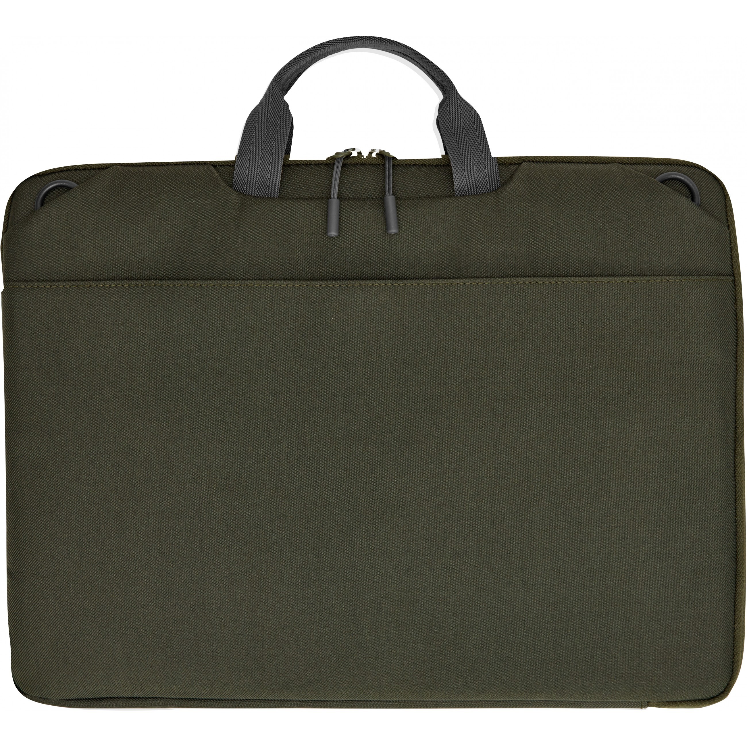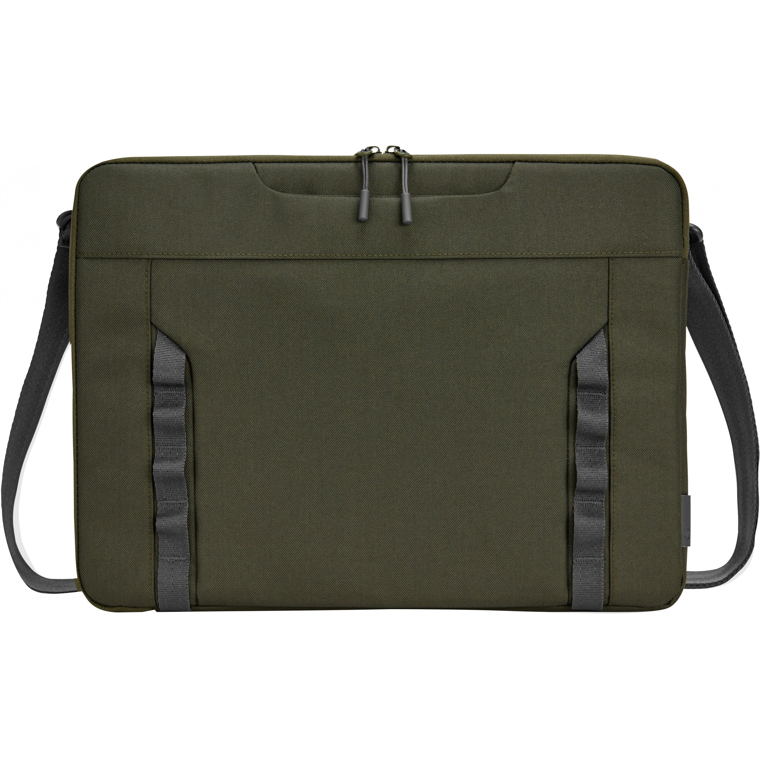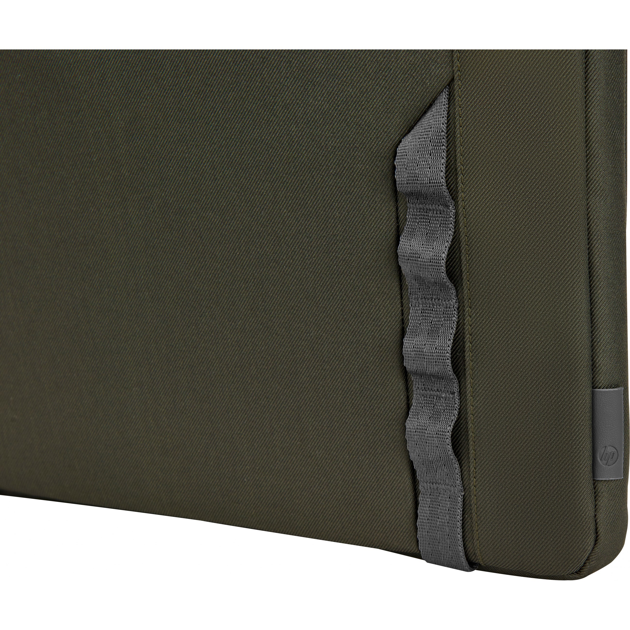 HP 15.6-inch modular laptop sleeve in green/gray. Water-resistant with removable shoulder strap; foam/polyester/PU; fits 15.6" laptops; 420 g.