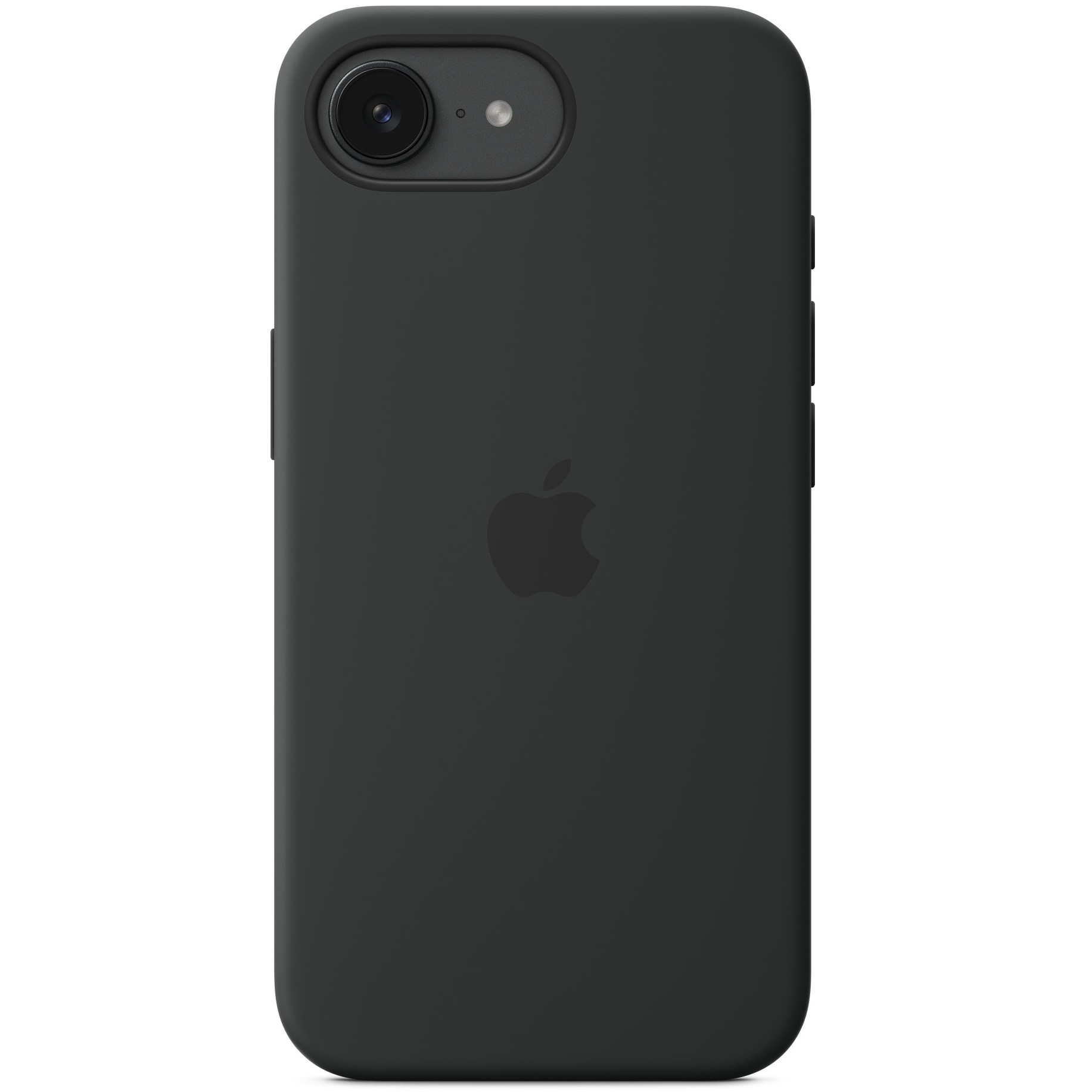 Apple iPhone16e Silicone Case in Black. Fits iPhone 16e; silicone cover with drop-proof and scratch-resistant protection; 15.5 cm (6.1 inch) screen compatibility.