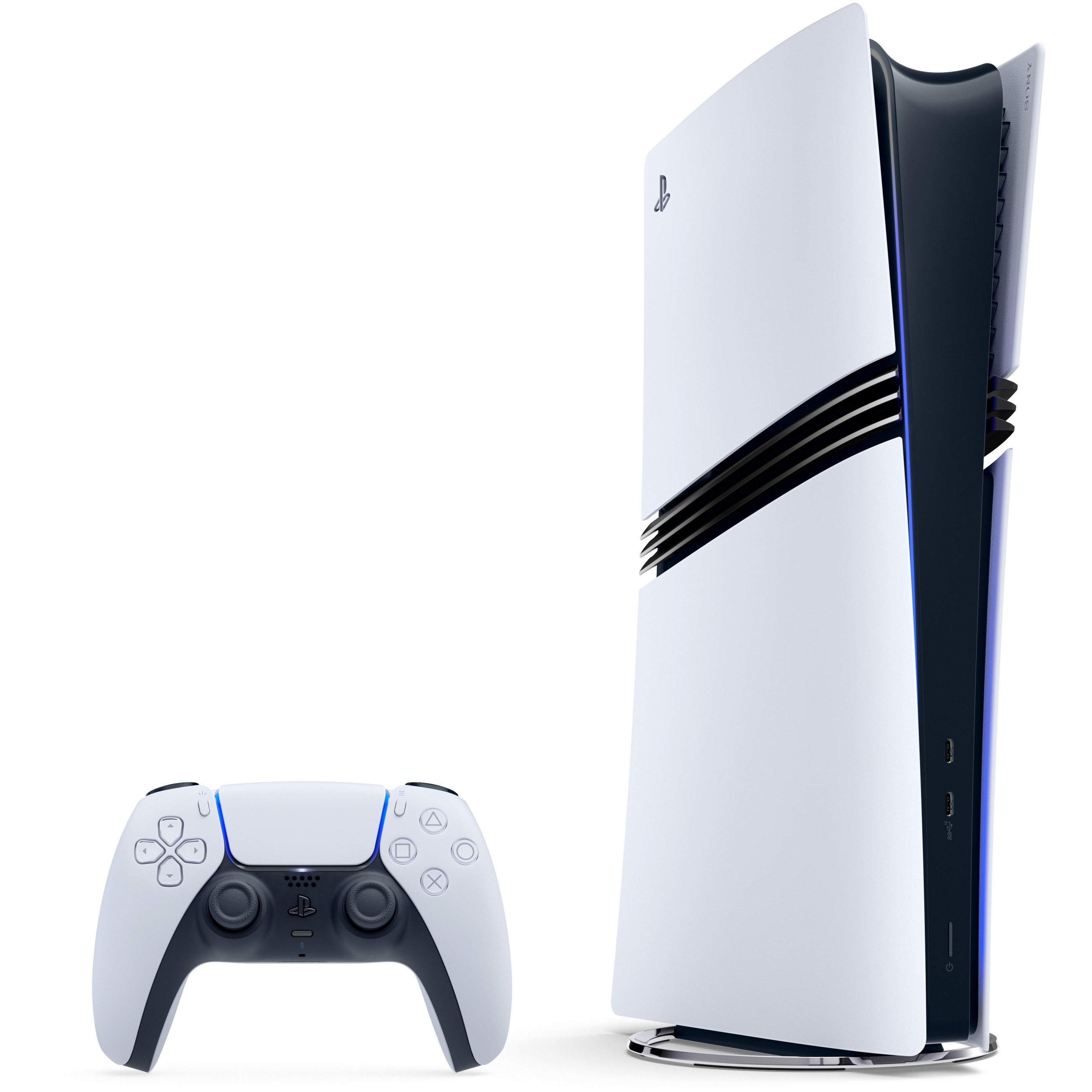 Sony Playstation 5 Pro. Platform: PlayStation 5 Pro. Product colour: Black. White. Maximum refresh rate: 120 Hz. Storage media: SSD. Internal storage capacity: 2 TB. Ethernet LAN data rates: 10.100.1000 Mbit/s. Ethernet interface type: Fast Ethernet. Gigabit Ethernet. Networking standards: IEEE 802.11be. HD type: 8K Ultra HD. Power source: AC