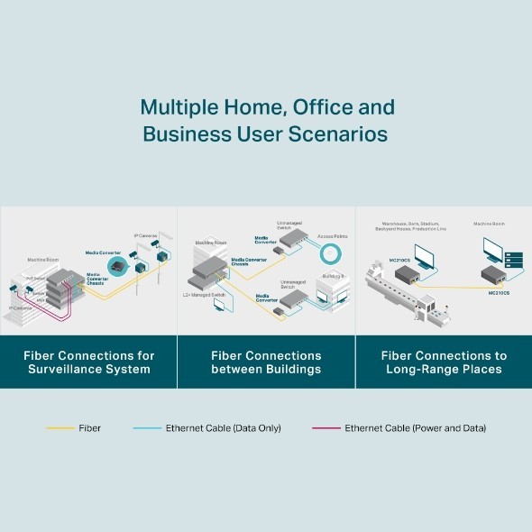 Unmanaged media converter: 1x RJ45 to 1000BASE-LX fiber (SC) for bridging copper to long-range fiber.