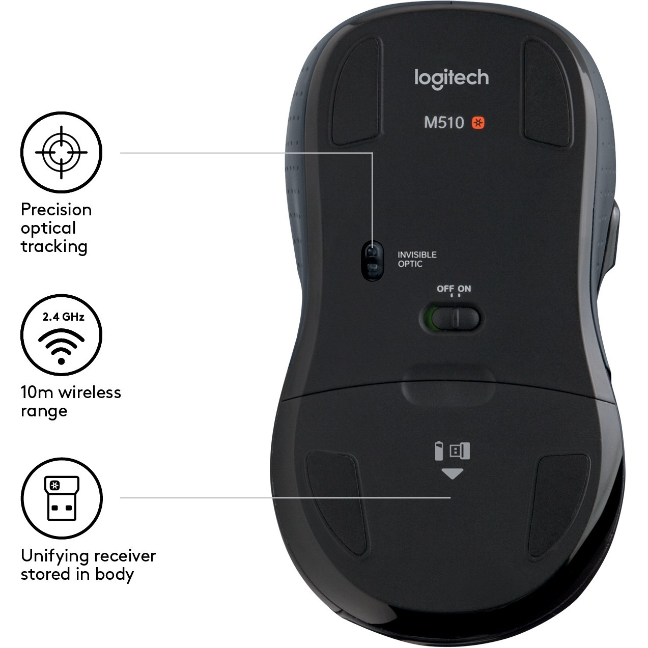Logitech M510 - M510 - Ergonomic Right-Handed Office Wireless Mouse