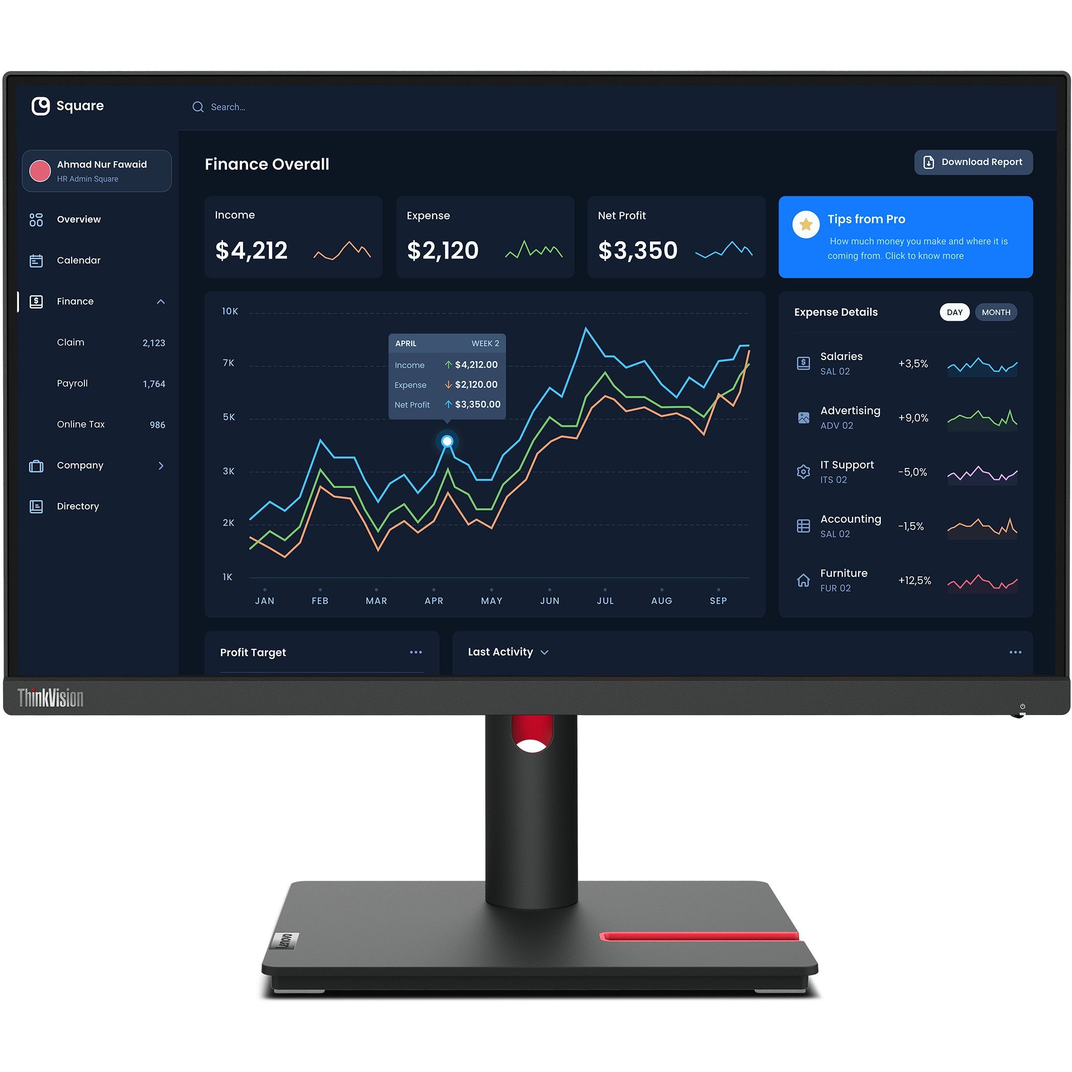 Lenovo ThinkVision Monitor - T22i-30 - (21.5-inch, FHD IPS, 60Hz, 4ms, Pivot, HDMI/DP/USB, Black)