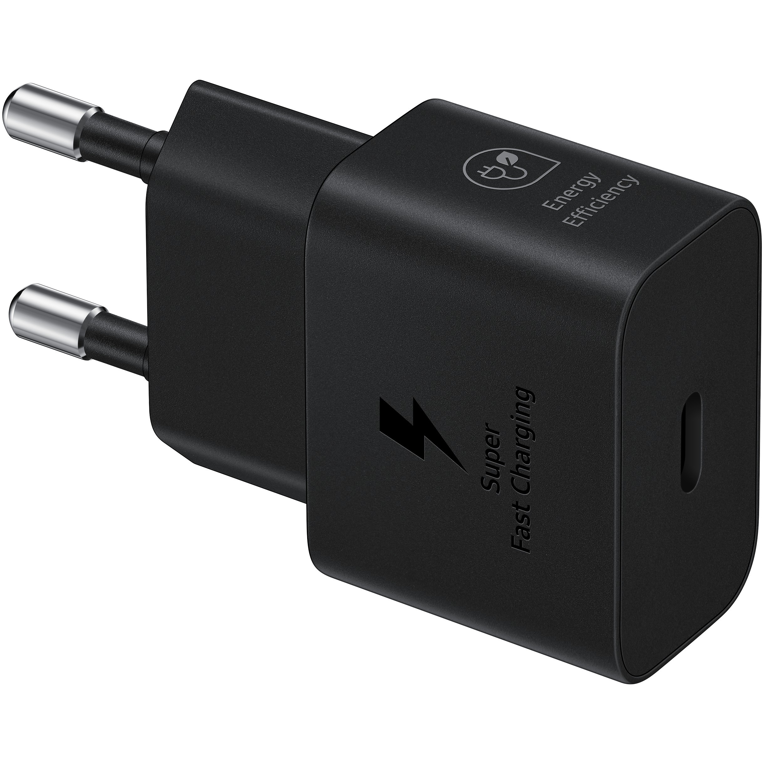 25W USB-C power adapter with 1m cable in black blister-pack; fast charging for USB-C devices.