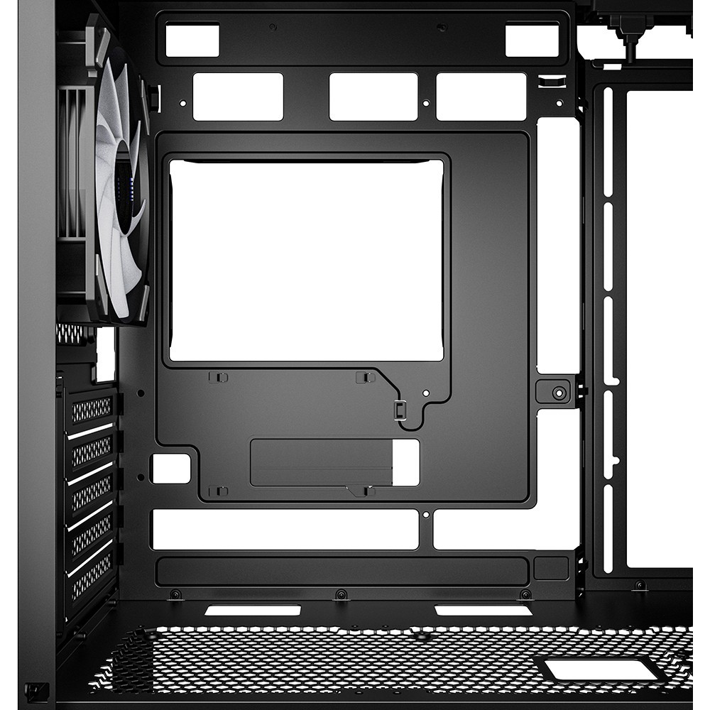 Compact Micro-ATX PC case with RGB lighting and a glass side panel; supports Micro-ATX boards, black finish for stylish builds.