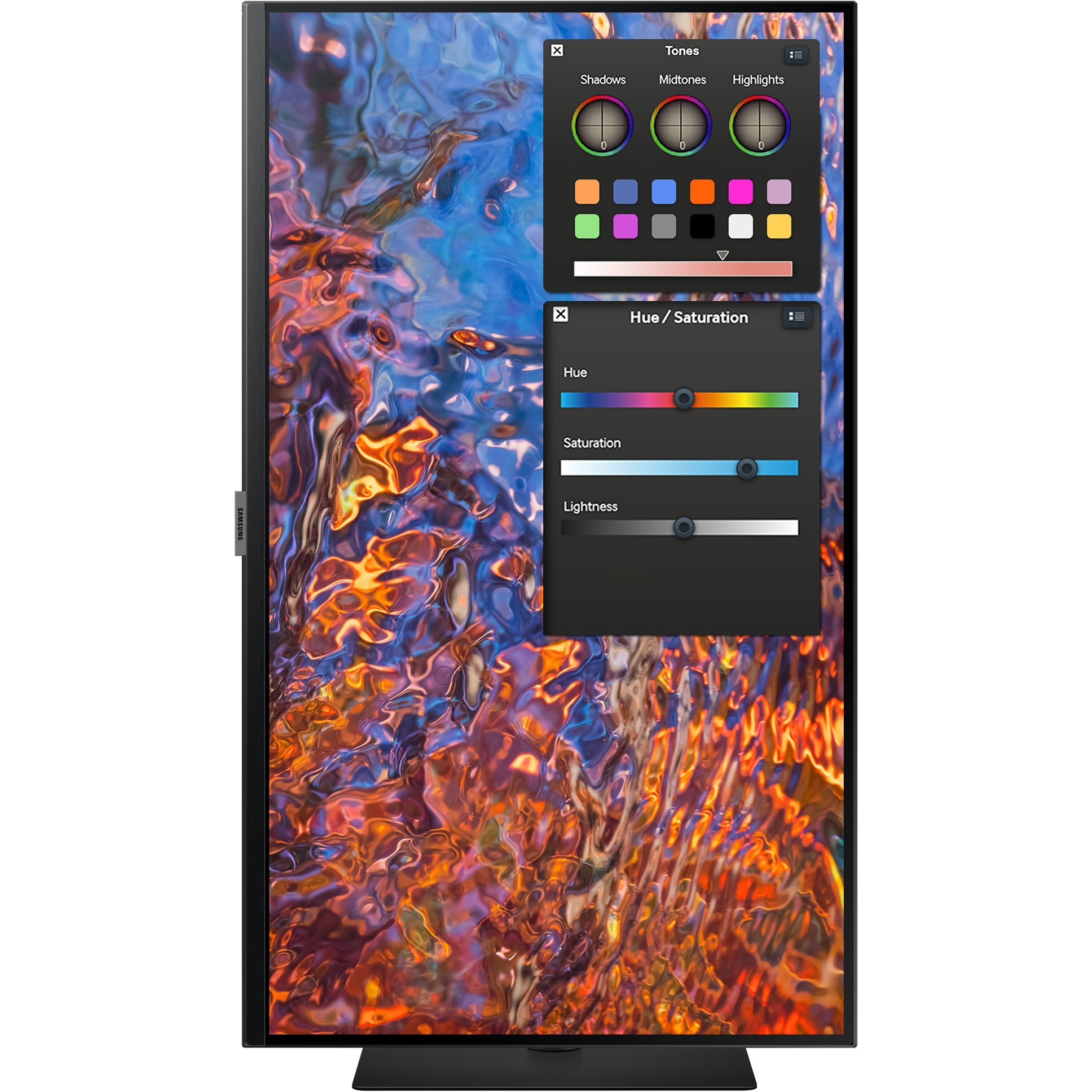 32-inch 4K IPS Samsung monitor with HDMI, DisplayPort, USB-C, VESA compatibility and Pivot stand.