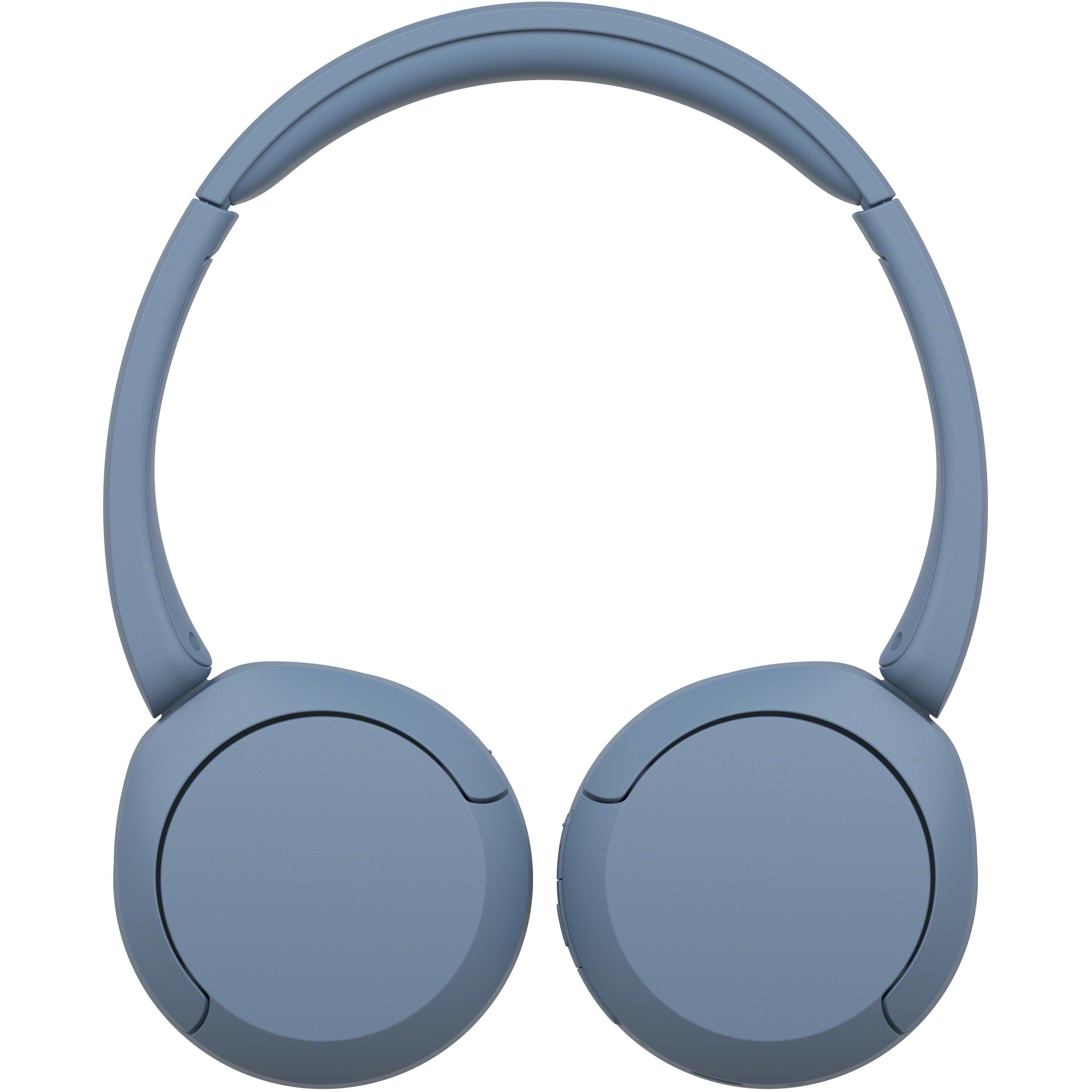 Blue Sony WH-CH520L on-ear wireless headphones with Bluetooth; no active noise cancellation.