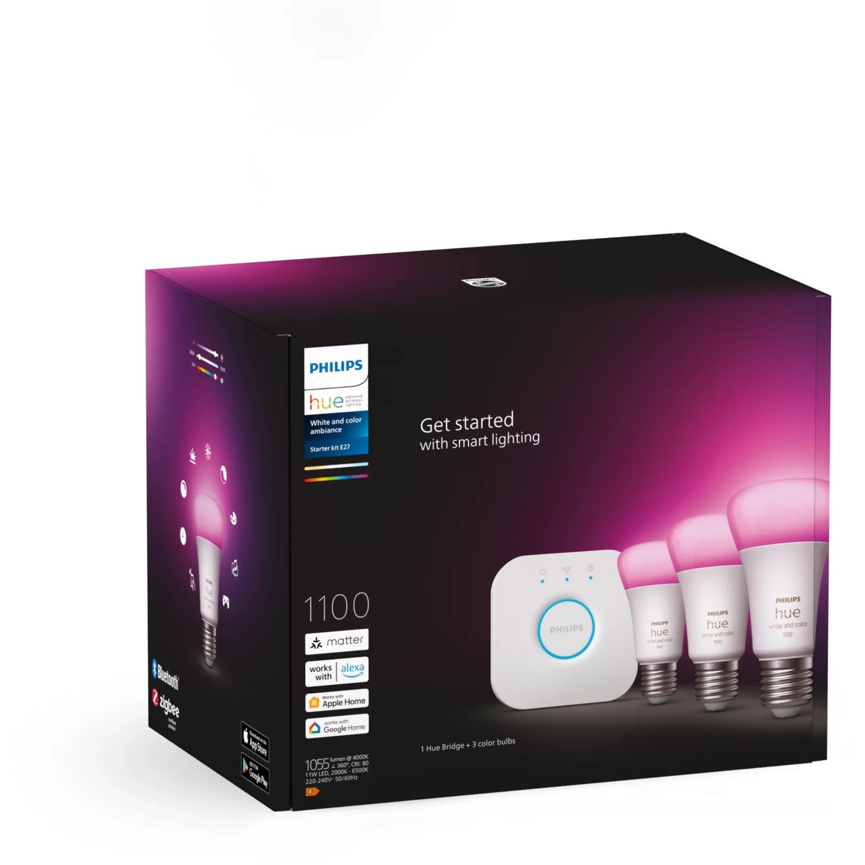 Philips Hue White & Color Ambiance E27 Starter Set - 3-pack - 2700-6500K, Zigbee, Dimmable