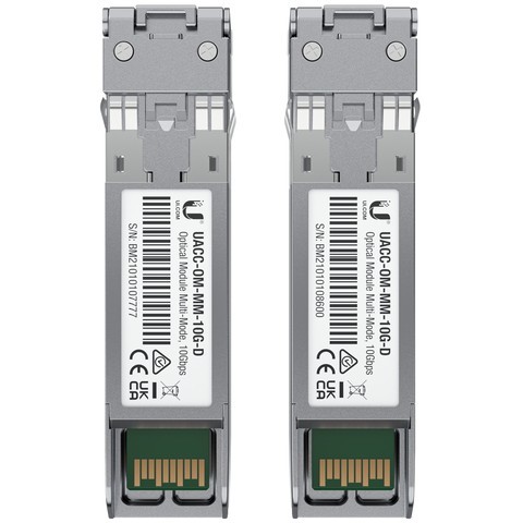 Ubiquiti U Fiber MMF SFP+ module, 10G throughput, LC duplex, 2-pack.