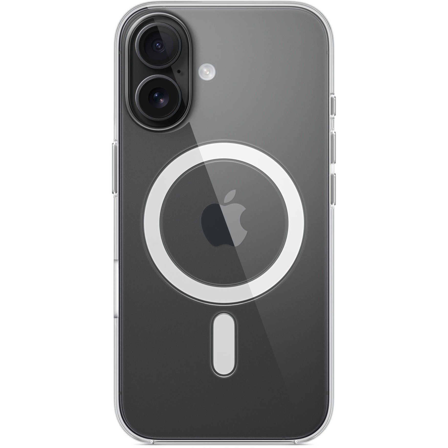 Clear MagSafe-compatible iPhone 16 case with transparent design, precise cutouts, and wireless charging compatibility.