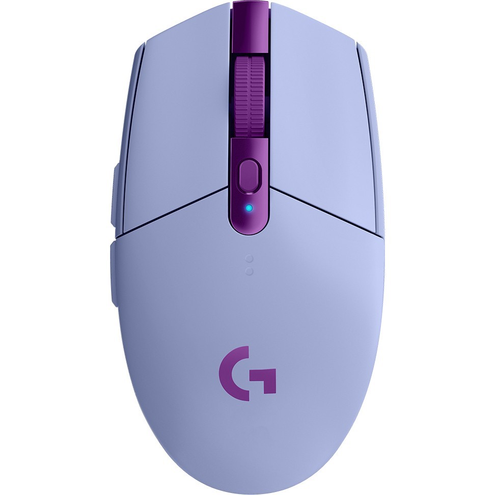 Logitech G305 LIGHTSPEED wireless gaming mouse with 2.4 GHz dongle, up to 12000 DPI, ambidextrous, 6 programmable buttons, no RGB, uses replaceable AA battery.