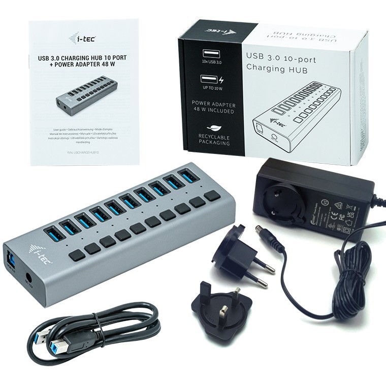 D I-TEC USB 3.0 HUB 10 PORT - USB-A Hub, 10-Port, 48W Power Supply