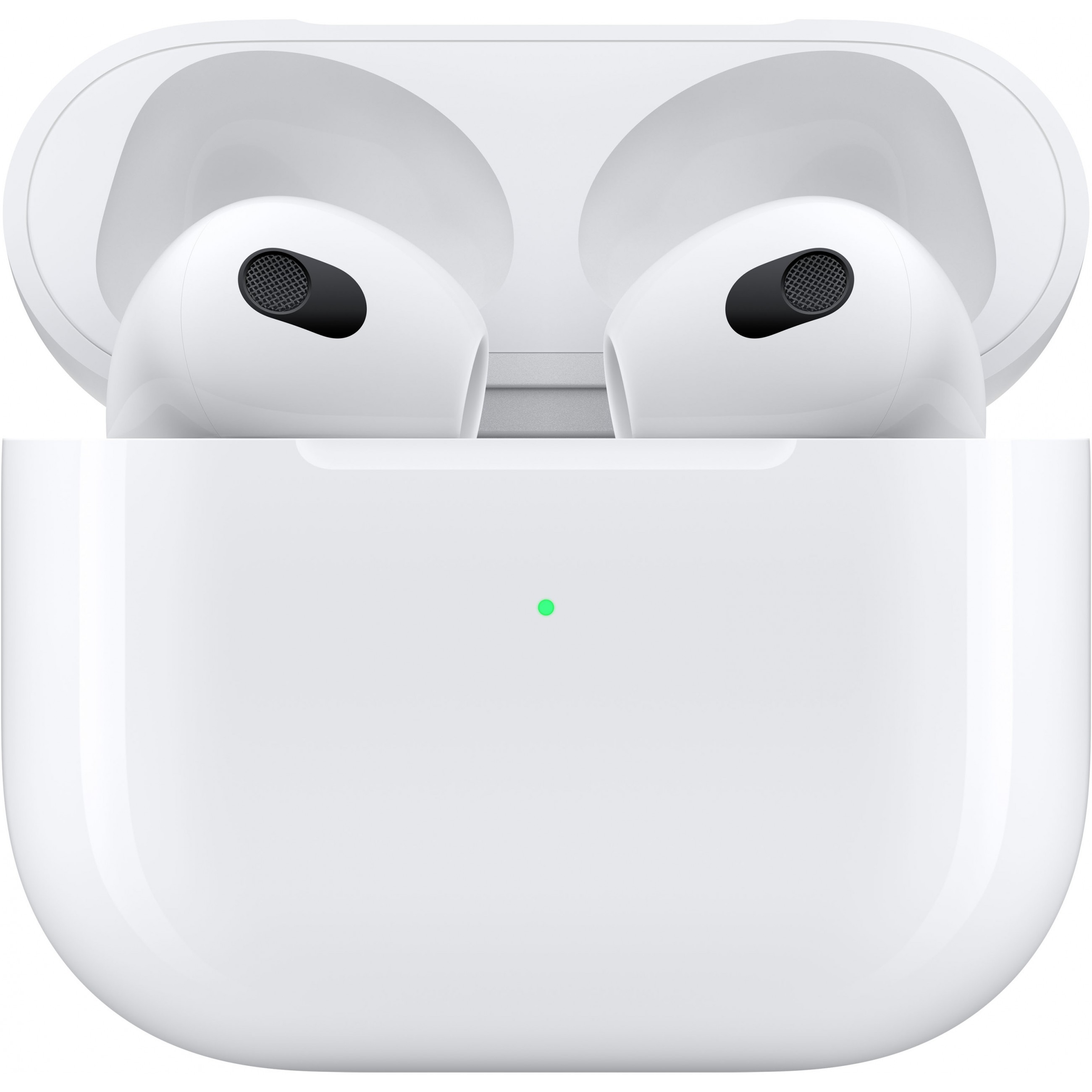 AirPods (3rd generation) with MagSafe charging case. Rich sound with Adaptive EQ, up to 6 hours listening, 30 hours with case. White.