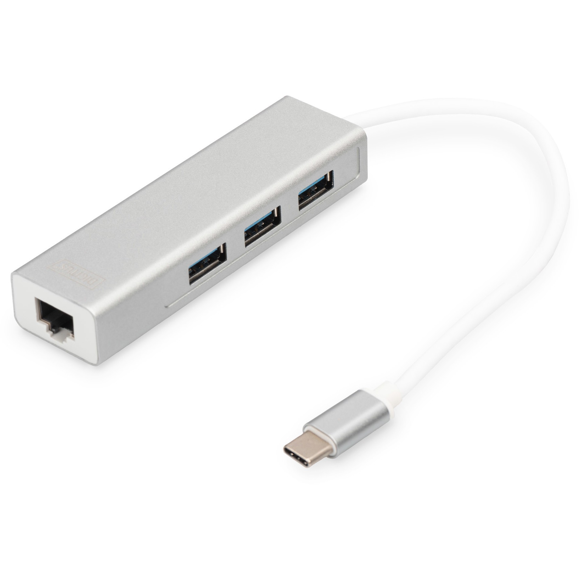 DIGITUS USB-C Hub with 3-Port USB 3.0 + Gigabit Ethernet - White