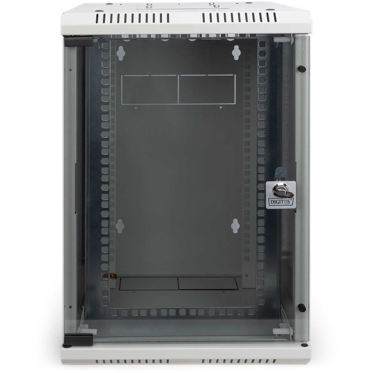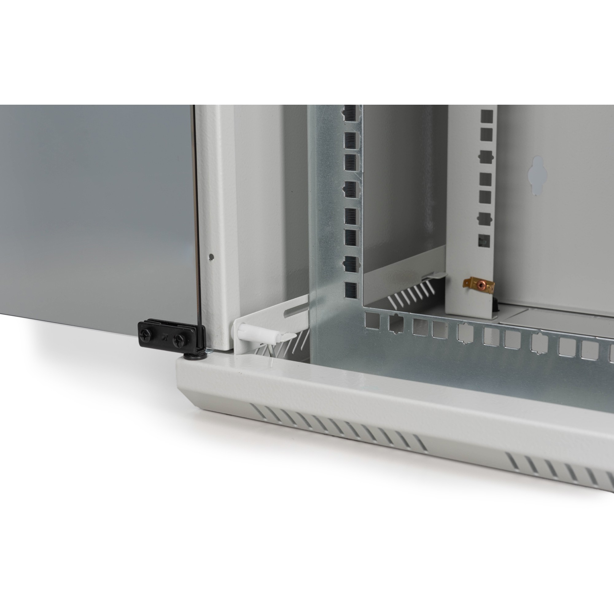 DIGITUS 254 mm (10\") and 482.6 mm (19\") Kombi Wall-Mount Cabinet - 10U, Grey Steel, Glass Front