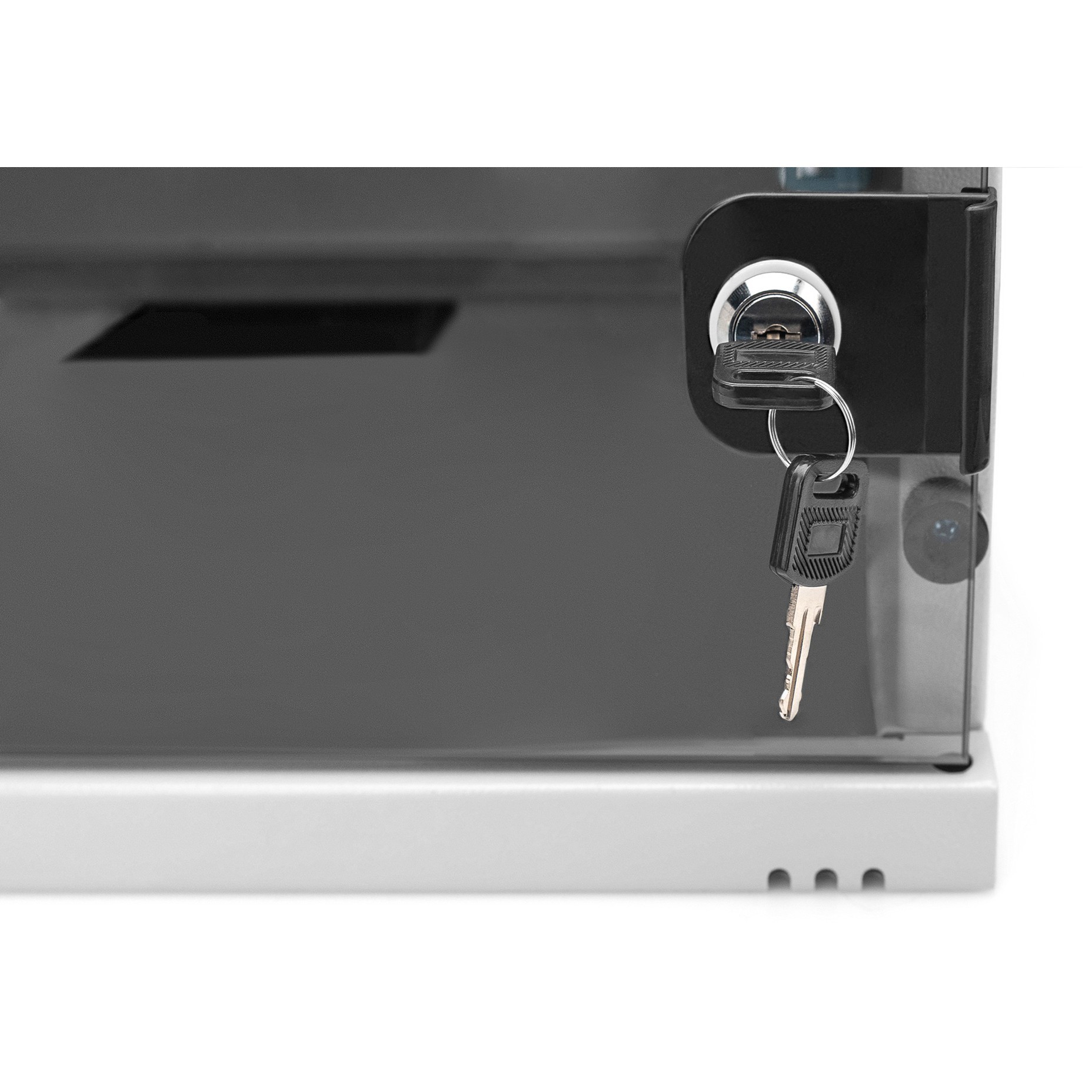 Digitus Wall Mounting Cabinet. SOHO. unmounted - 540x400 mm (WxD). Type: Wall mounted rack. Rack capacity: 4U. Maximum weight capacity: 60 kg. Key lock. International Protection (IP) code: IP20. Weight: 10 kg. Product colour: Grey