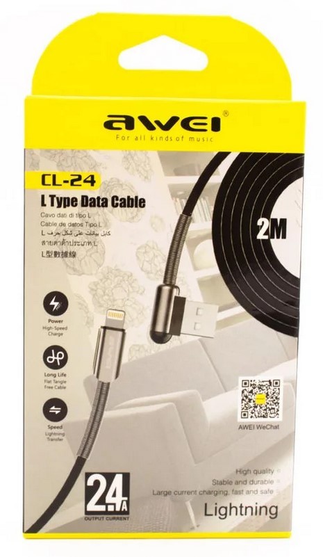 Awei CL-24 Lightning to USB-A Cable - Braided 2m, 2.4A Fast Charging