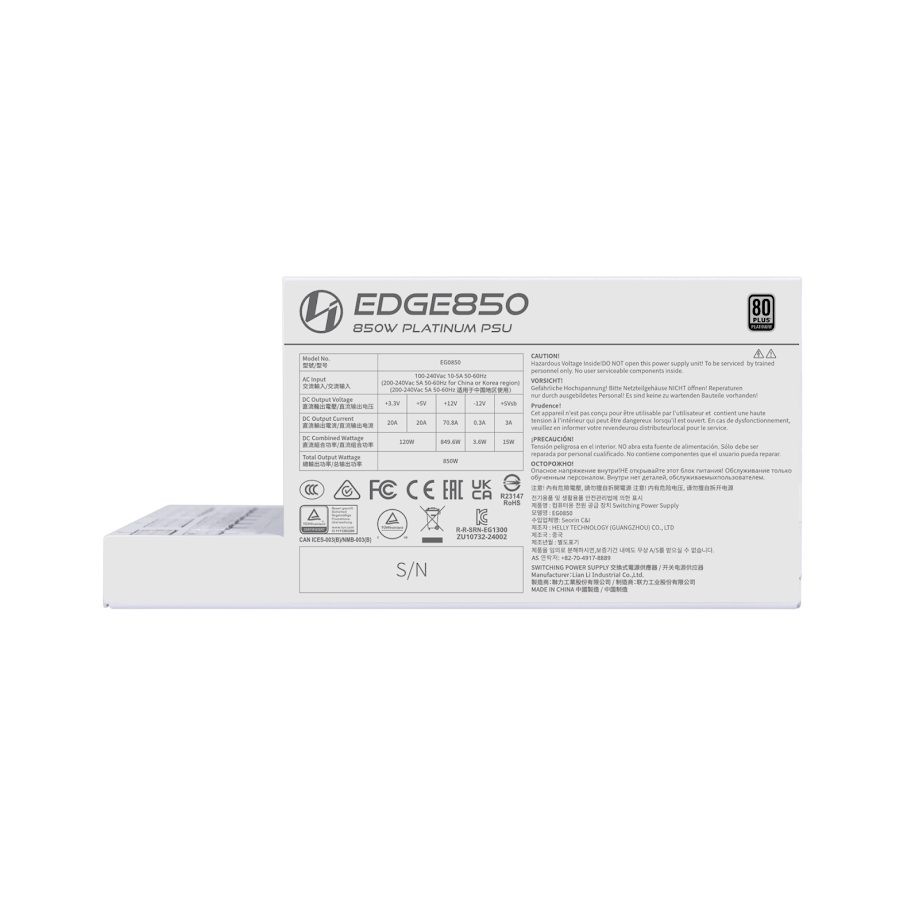 Lian Li Edge 850W White ATX PSU - 80+ Platinum - Fully Modular