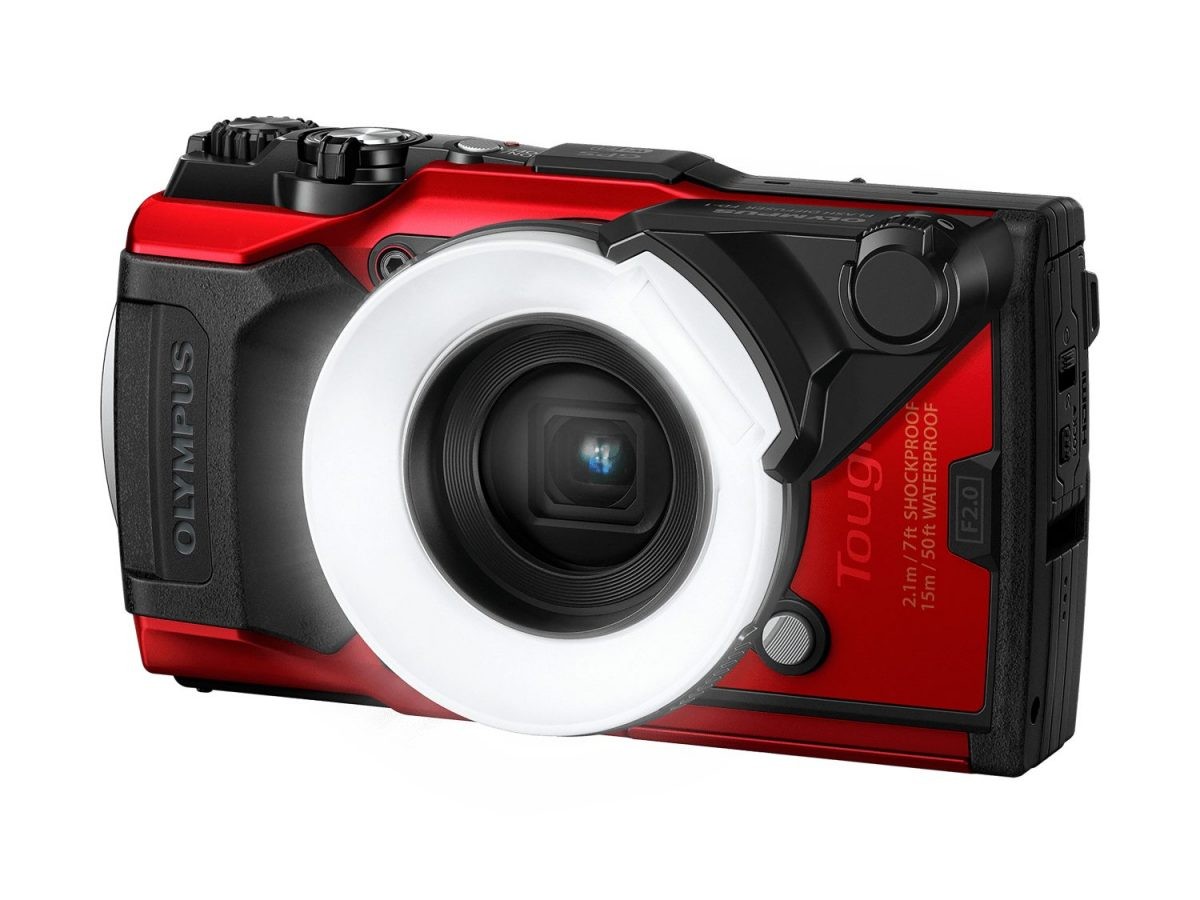 Circular diffuser for TG-4/5/6/7 Tough cameras; evenly spreads flash for close-up macro and low-light shots.