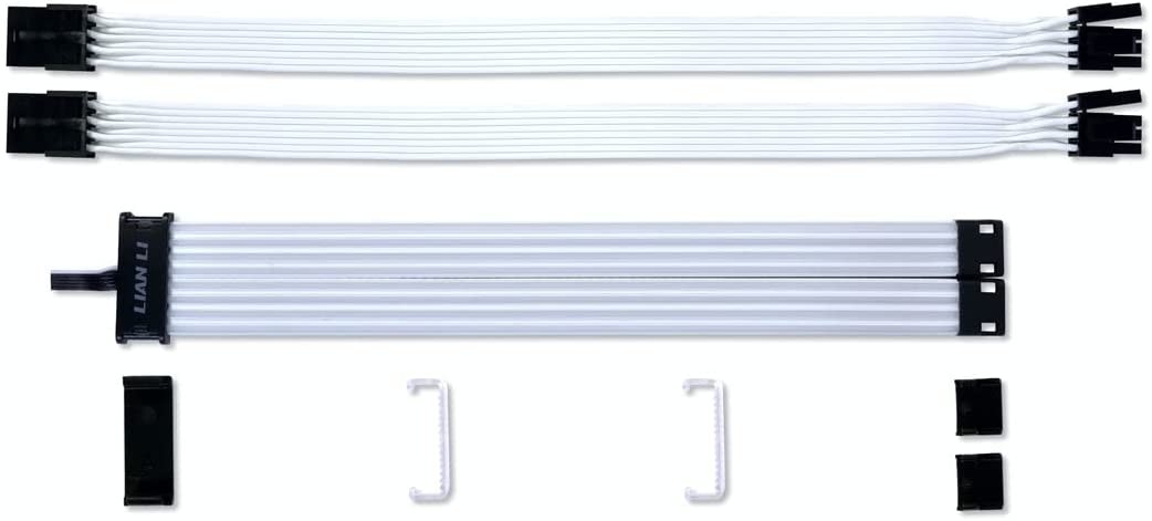 ARGB addressable RGB extension cables for 8-pin GPU power; 11 individual modes and 13 combined effects via L-Connect 3; premium build, clean curved LED look.