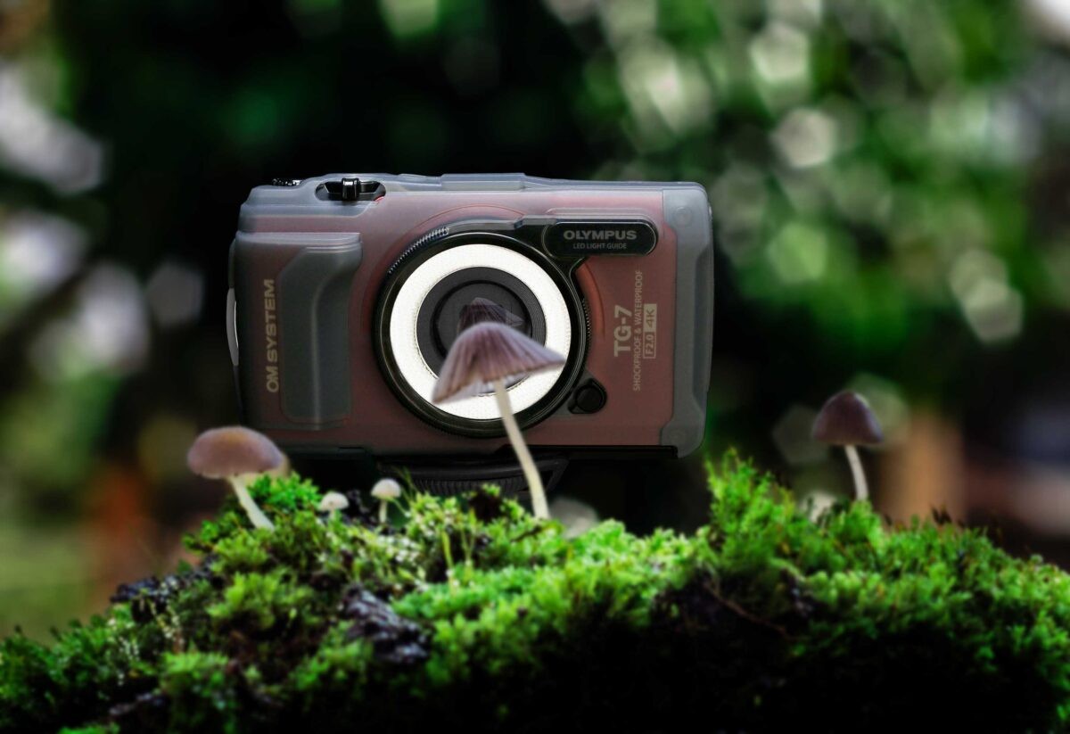 OM SYSTEM Tough TG-7: rugged, sealed body with dual-lock openings, waterproof to 15 m, and robust dust protection for sand and particles.
