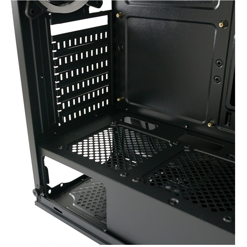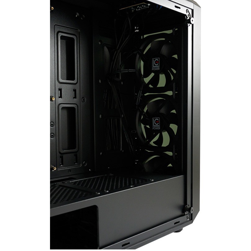 The LC-Power 703B Quad-Luxx gaming case combines modern design with excellent cooling performance. This Midi Tower supports ATX, Micro-ATX, and Mini-ITX motherboards, featuring a tempered glass side panel for showcasing your components and a black lacquered interior for elegant contrast.
