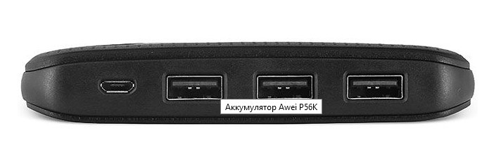Awei Power Bank P56K - 30,000 mAh Portable Charger - 3x USB Outputs, LCD Battery Indicator